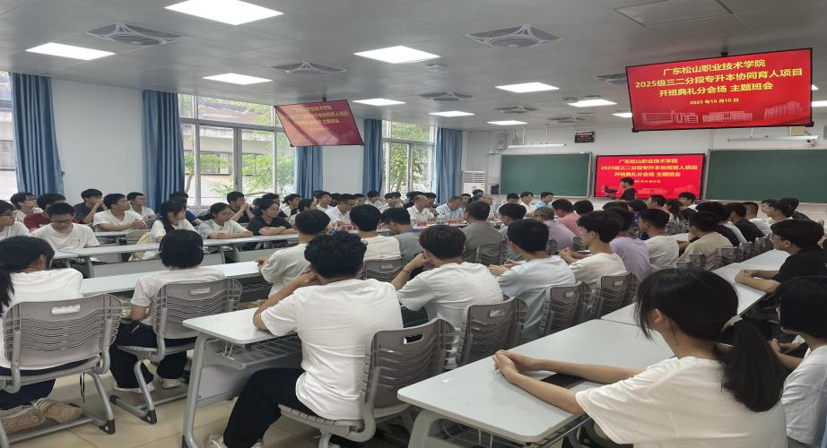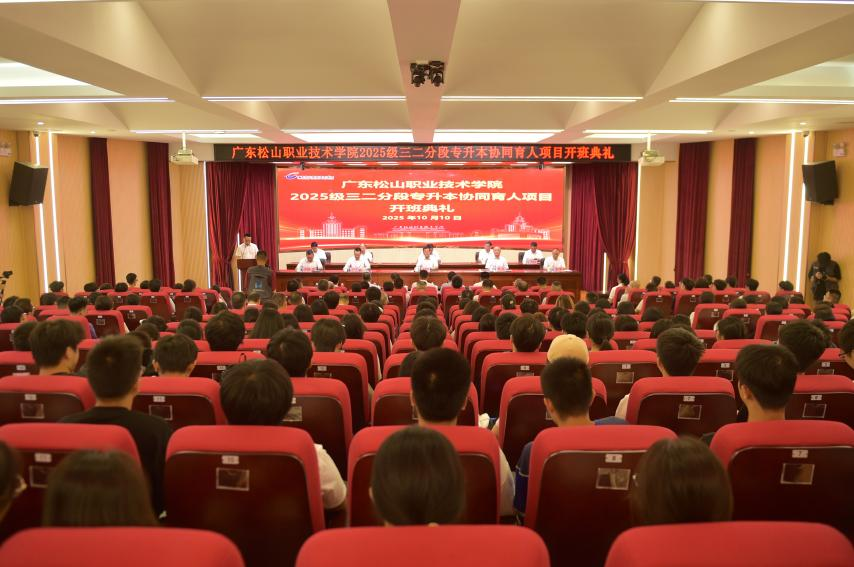 10月10日,广东松山职业技术学院与广东外语外贸大学、岭南师范学院、韶关学院三所本科院校合作培养的2025级三二分段专升本协同育人项目开班典礼在曲江校区宽C101正式举行。学校党委书记方迎生出席会议并致辞,广东外语外贸大学党委常委、副校长杨励,岭南师范学院副校长金义富,韶关学院党委委员、副校长田广增,学校党委副书记洪明刚出席典礼。学校副校长张志主持典礼。